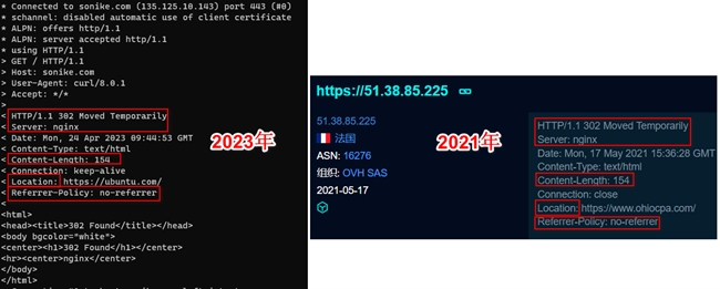 从使用人群的角度来看,小到黑灰产组织,大到国家级演习甚至 APT 组织产生的攻击行为中都可以发现 Cobalt Strike 的蛛丝马迹,像是近期发现的 APT29(Cozy Bear) 就是 Cobalt Strike 的拥趸,根据响应头和响应体可以看出,2023 年和 2021 年一样,都是使用了 Cobalt Strike