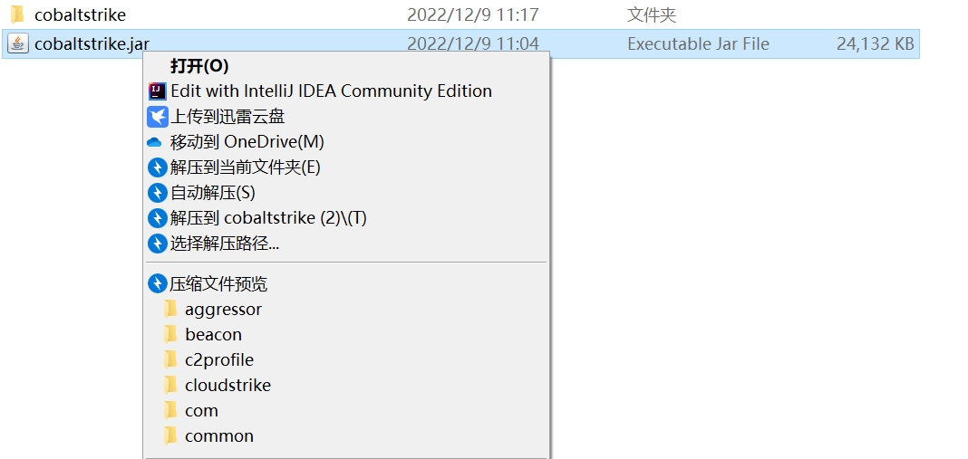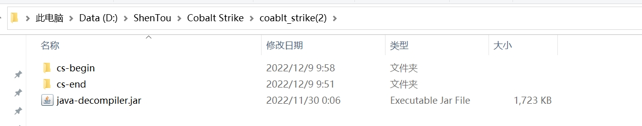 用来存放反编译后的源码,因为这里我们是对原版 Cobalt Strike 进行二次开发,所以文件夹中不存放 CSAgent (Cobalt Strike 破解工具),只放入 cobaltstrike.jar