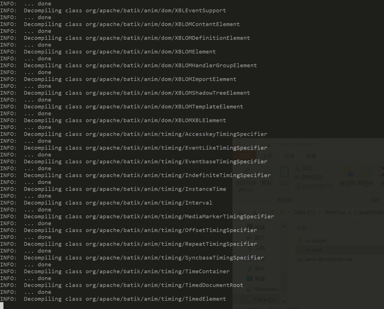 java -cp java-decompiler.jar org.jetbrains.java.decompiler.main.decompiler.ConsoleDecompiler -dsg=true D:\ShenTou\CobaltStrike\coablt_strike(2)\cs-begin\cobaltstrike.jar